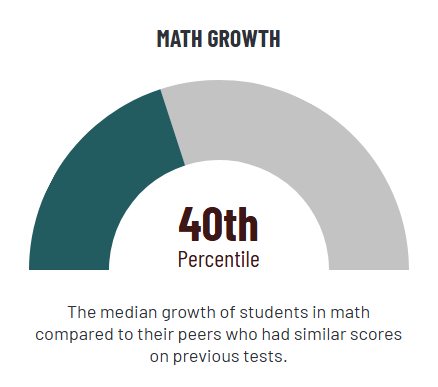 The median growth of students in grades 4-8 in math compared to their peers who had similar scores on previous tests. Percentile ranges from 34-66 represent about a year's growth typical for the academic peer group.