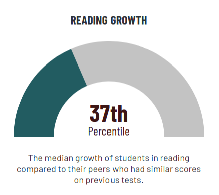 The median growth of students in grades 4-8 in reading compared to their peers who had similar scores on previous tests. Percentile ranges from 34-66 represent about a year's growth typical for the academic peer group.